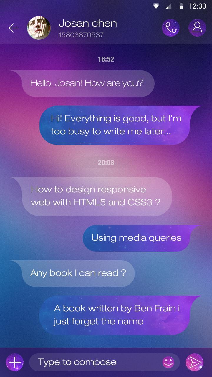 Purule Night est un thème conçu spécialement pour GO SMS Pro.